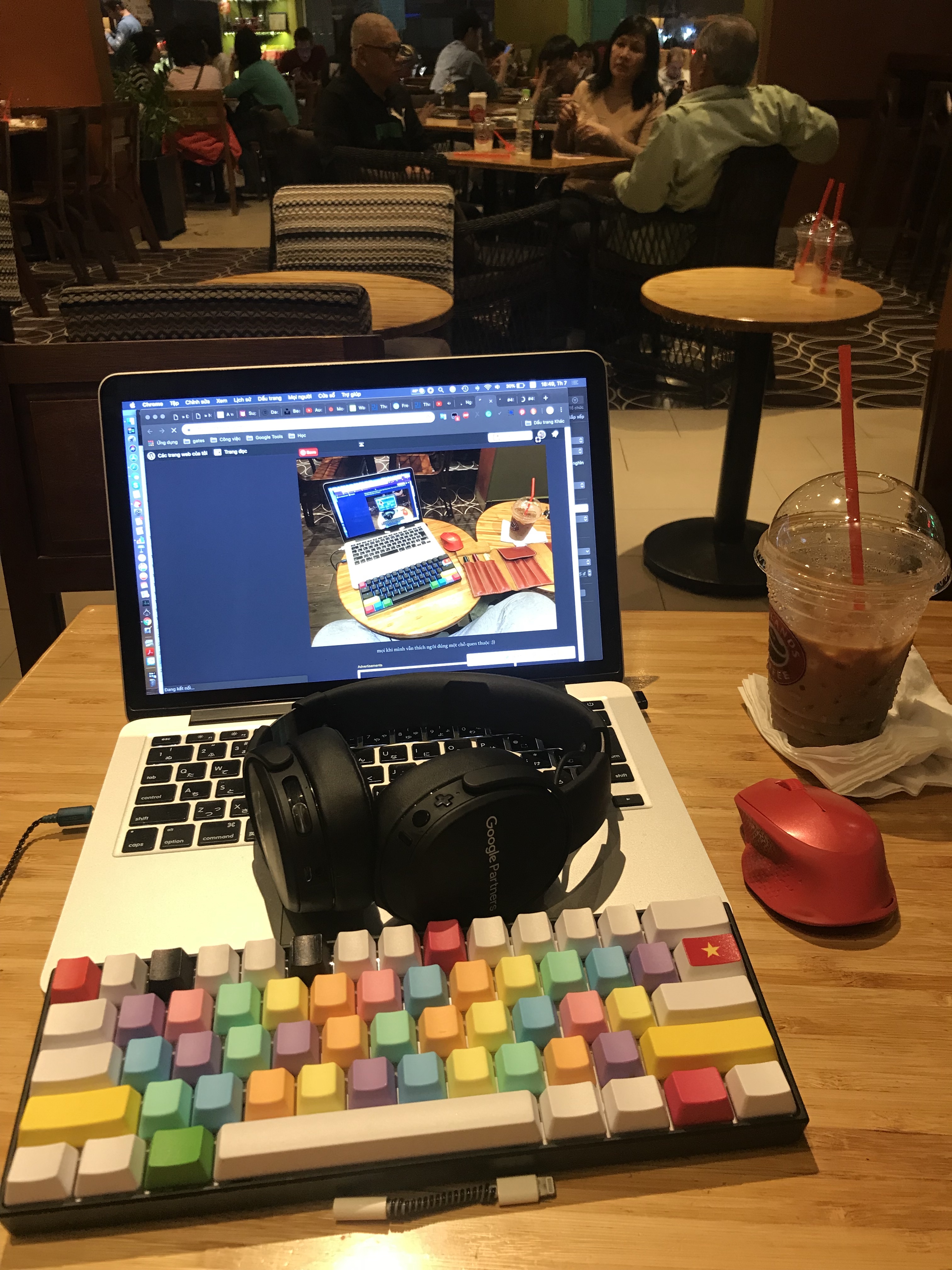 Mình vừa cập nhật keycap cho con bàn phím :))) nó trở lên hơi bị màu mè rồi như ảnh dưới đây.