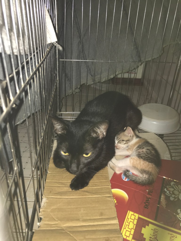 à đây. đây là ảnh em Fanta bé bỏng with mèo mẹ.