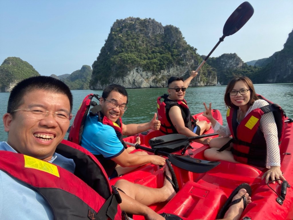 Nhưng tuần này thì khác, Anh X aka chairman của tập đoàn, mở 1 tour đi du thuyền cho 25 người của các công ty thành viên đi để nhận mặt nhau, lần này du thuyền khởi hành từ quê nhà Hp, :)) mình đi thiệt cmn gần nhà nhưng mà không về.