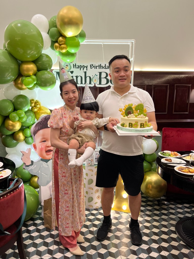 E bé Nhật Minh đc mẹ tổ chức cho một bữa tiệc sinh nhật, ấm cúng nhẹ nhàng toàn gia đình người thân, ông bà nội đã lên từ tuần trước, ông bà ngoại “sịn” thì vắng mặt :)) chỉ còn ông bà ngoại Sịn luôn luôn cưng chiều em bé Bơ cưng xỉu.