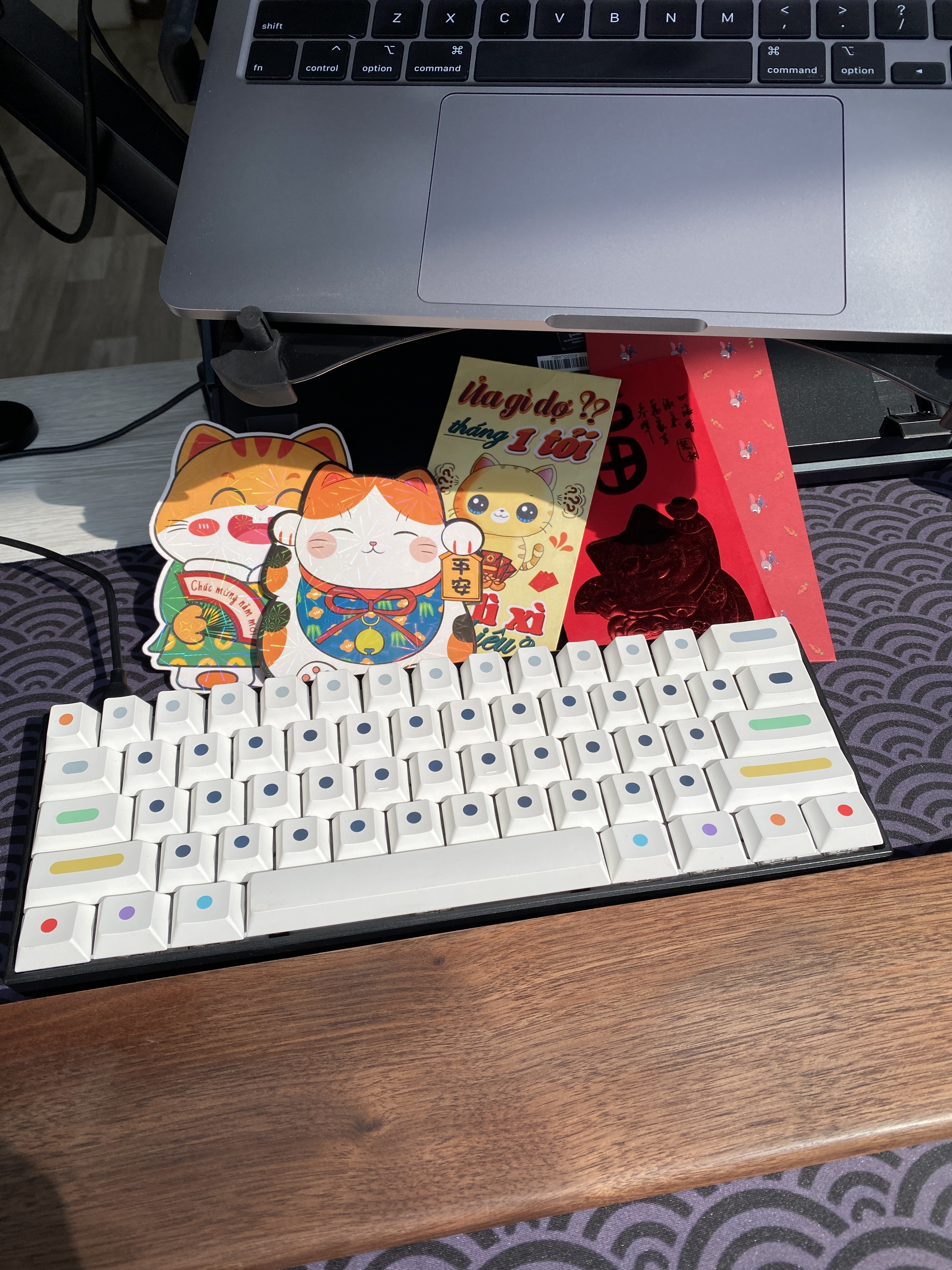 Mình chuyển lại gõ trên chiếc bàn phím cũ đã thay hết switch sang kailh box pale đã lure rất là êm với một độ đàn hồi dễ chịu, cùng 1 bộ keycap chỉ toàn dot, nếu người lạ không quen phím thì chắc chắn không thể gõ được, ace bảo sao mình lại dùng quả bàn phím tra tấn như thế:)) chắc là do quen thôi.