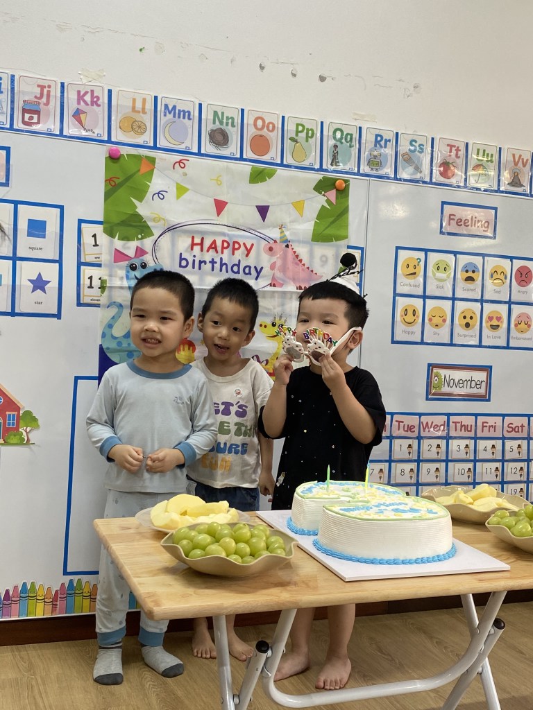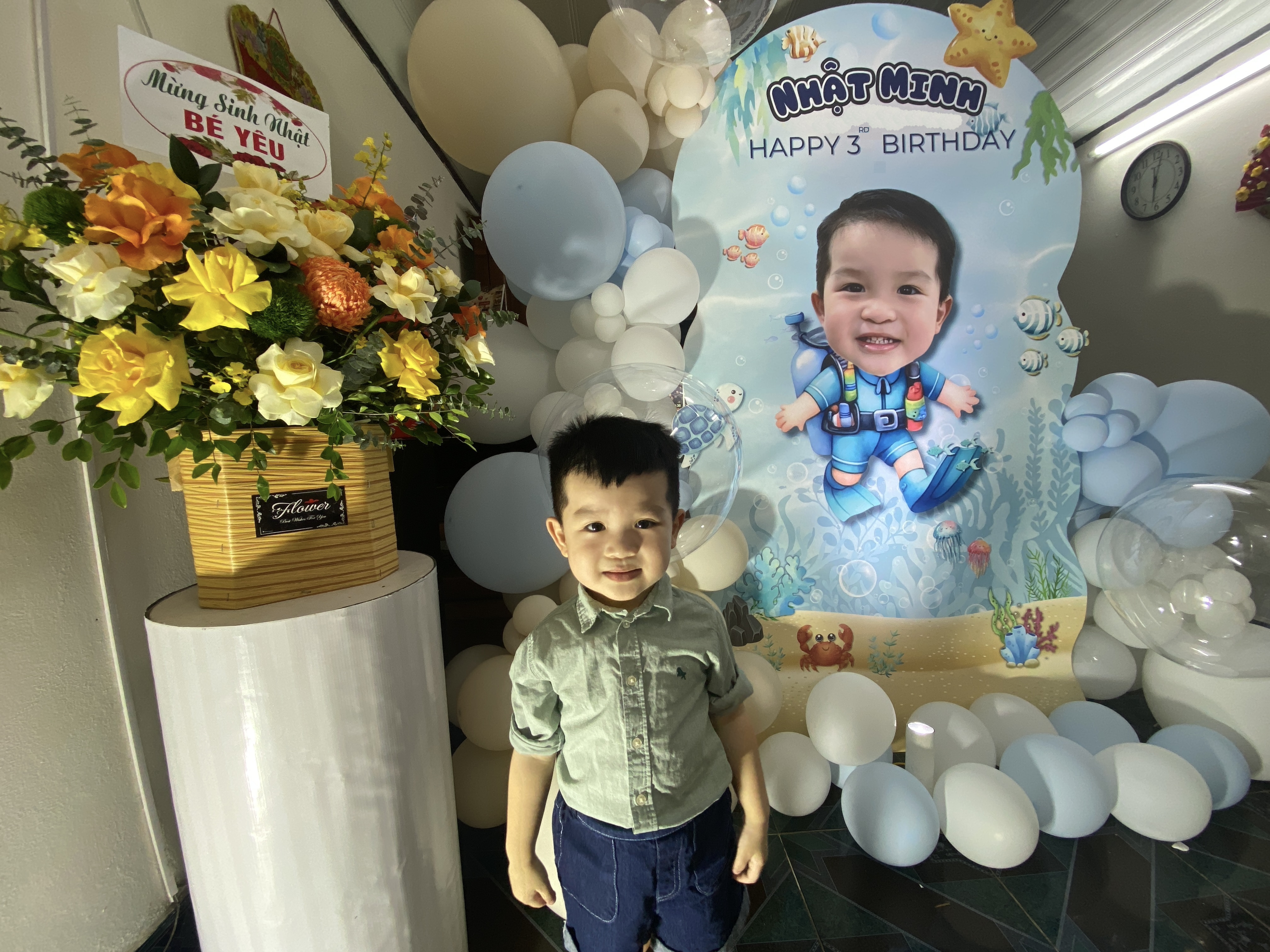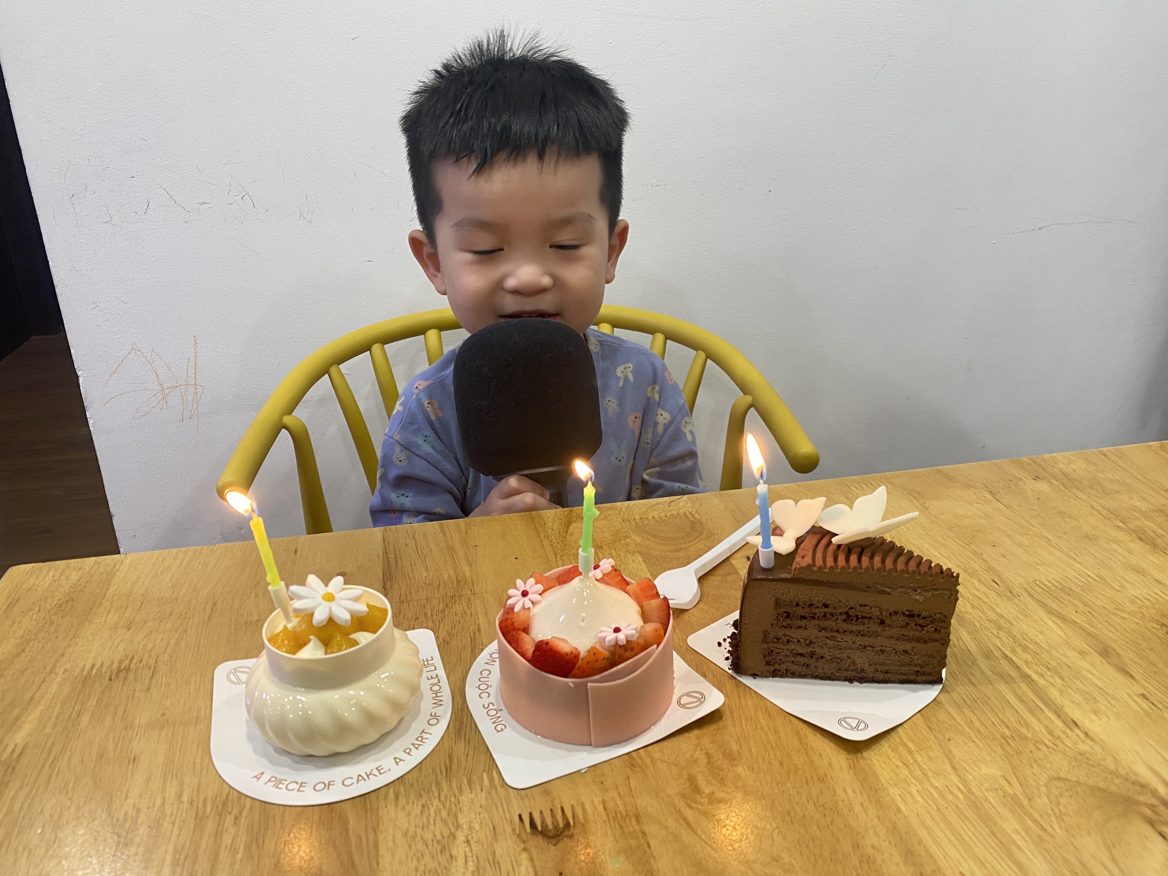 Sinh nhật béo Bơ kéo dài đúng 1 tuần với 4 lần thổi nến, 1 HP với quả set up mời khách như có tiệc, 1 ở trường với các bạn học thân thiết và bố mẹ xuất hiện làm béo bơ sung sướng hết mức, 1 ở chỗ ăn Pizza có robot :)) hội tủ mọi thứ Bơ Thích : Ngô chiên, pizza phô mai với mật ong, robot, kem chanh và nước táo :)) , 1 ở nhà với 3 cái bánh nhỏ khác nhau với bố mẹ và chú Nhân, ấm cúng và vui vẻ.