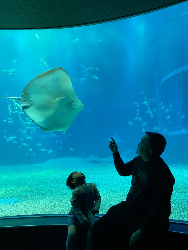 Iconic ở Thuỷ Cung Osaka có lẽ là cá mập voi với hoa văn chấm ở trên lưng, miệng rộng và không thấy nhe răng sắc lắm. có 1 đôi: bạn đực tên là Kai-kun và bạn cái tên là Yuu-chan, có cả cá mặt trăng một loài khá là hiếm được nhìn thấy. Với concept quả bể chính chiếm chọn trung tâm của toà nhà từ tầng 4 xuống tầng 2 và con đường thăm quan sẽ đi xoáy trôn ốc xuống tận đáy của bể này làm cảm giác không gian cực kì ấn tượng. Ngoài ra thì còn có Cá heo, hải cẩu, sư tử biển, chim cánh cụt, và sứa, 🙂 gian bể Sứa có lẽ x5 lần so với ở Lotte