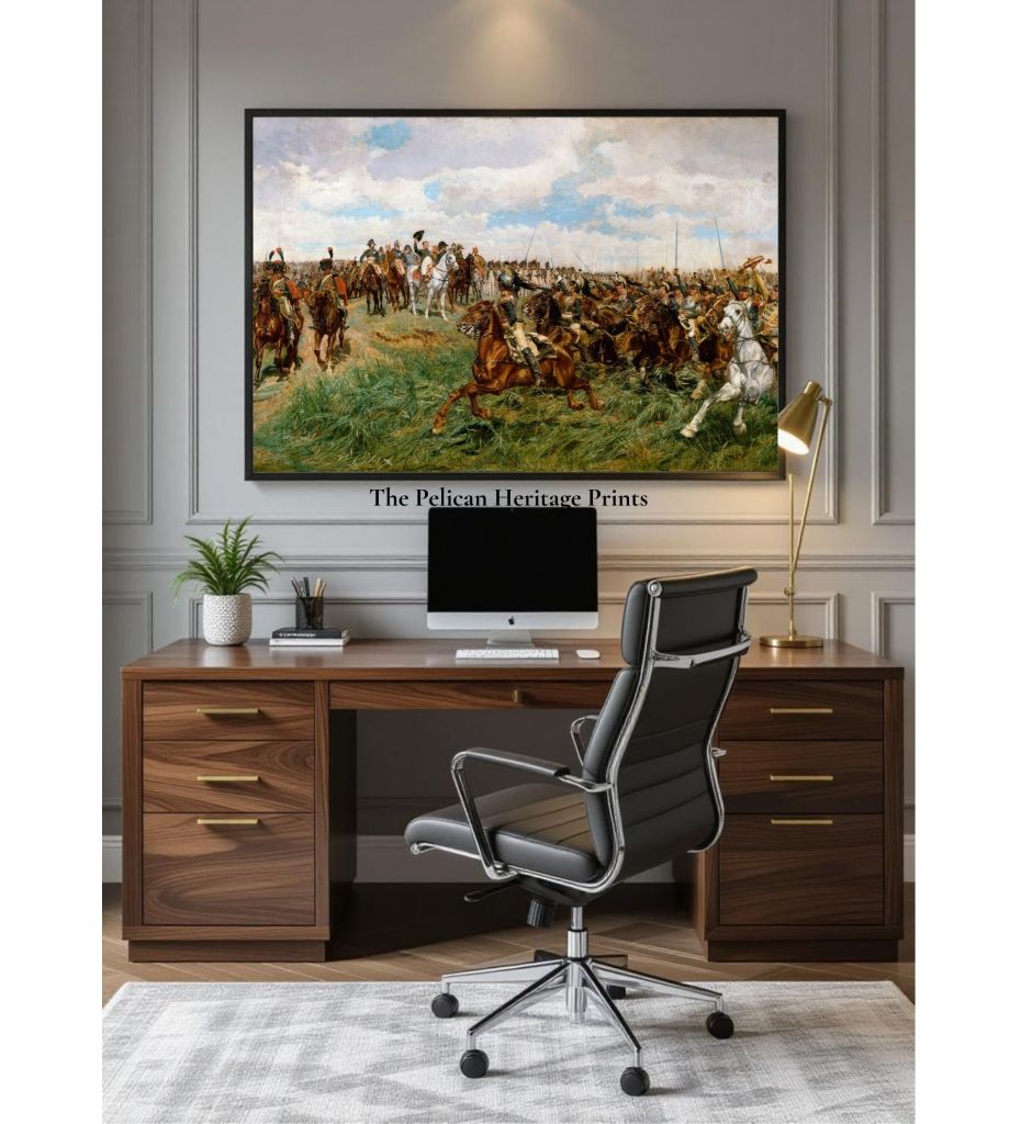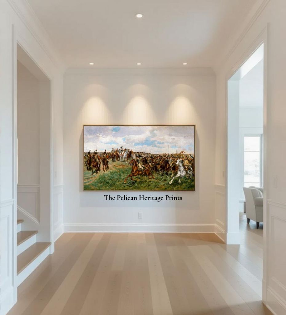 Standing before this painting, one cannot help but be swept up by its force. The eye darts between the furious charge on the right and the poised command at the center. The ear almost hears the clash, the shout, the pounding of hooves. And the heart feels both admiration and melancholy — admiration for the bravery, melancholy for the inevitable loss.