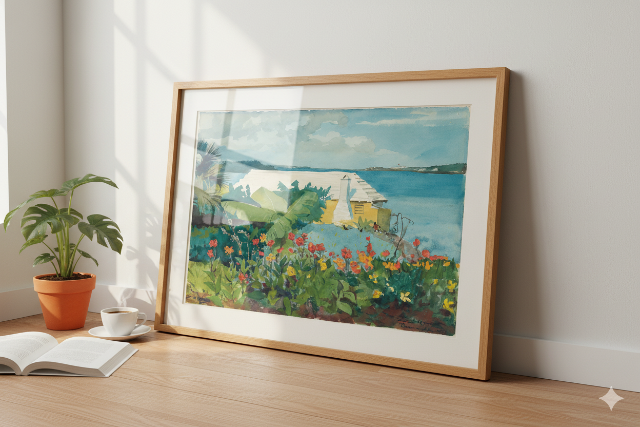 For collectors or anyone who loves art that radiates calm, a print of Flower Garden and Bungalow, Bermuda would be a gentle invitation to bring tropical light into your space. If you’d like to explore more carefully selected digital art prints inspired by works like this, you can visit our website, where we’ve gathered links to help you find pieces that resonate.