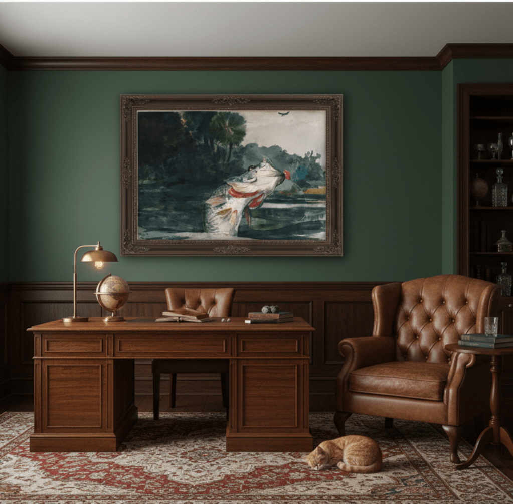 By this point in his life, Homer was already an American legend, known for his powerful seascapes and his unflinching portrayal of man’s struggle against nature. Yet here, late in his career, he turned his eye not to men but to a fish, and somehow made it feel just as human. You can sense his fascination with life itself — the pulse, the fight, the moment before fate decides.